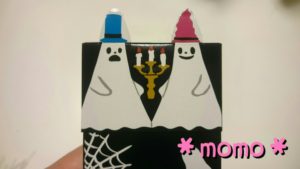 箱の横にオバケの帽子がついています。
