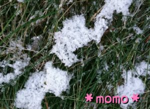 まだ根雪にはならないけど、草の上に夜降った雪が残ってました。