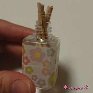 あとはエタノールと精油を入れて爪楊枝を差し込むだけ。