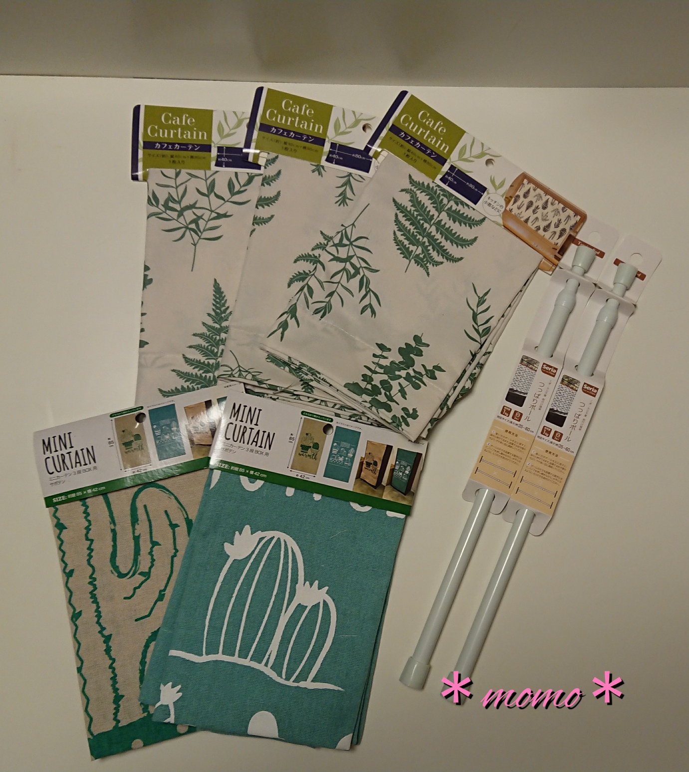 (サボテン柄のはついでに買ったカラーボックス用の目隠しカーテン。
