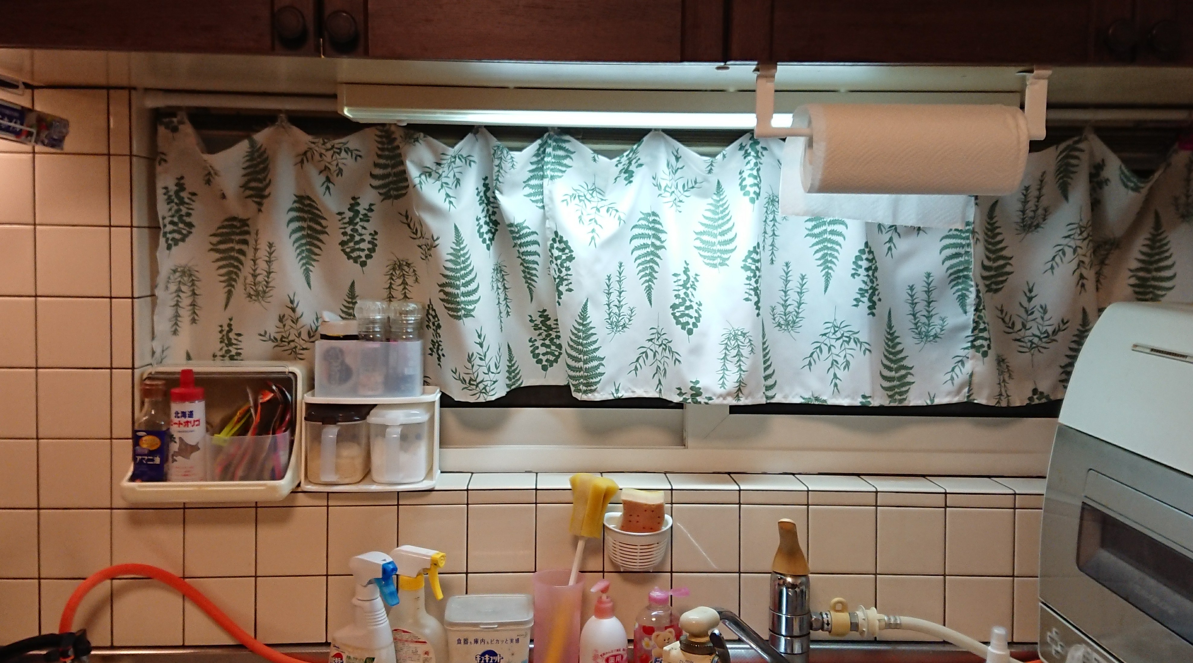 キッチンはナチュラルな感じが良いなと思ったので、グリーンの葉の柄を選びました。