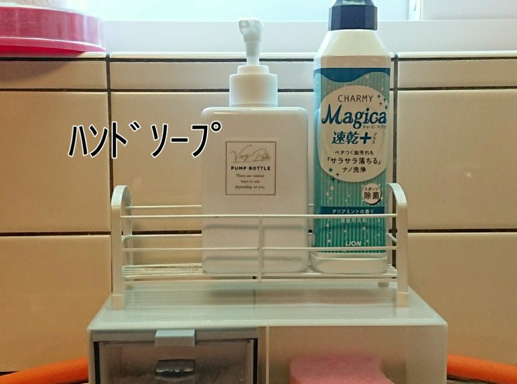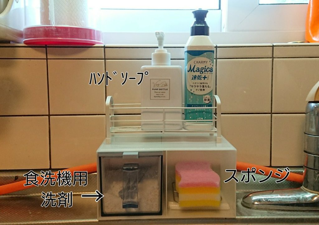 前はただ並べていたけど、流しの周りにただズラリと並んでいる見た目は良いものではありませんでした(余計なアクションは不要なので使いやすかった)